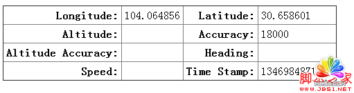 并不是所有的信息都會(huì)返回,這取決于你承載瀏覽器的設(shè)備。像有GPS、加速器、羅盤(pán)的移動(dòng)設(shè)備會(huì)返回大部分信息,家用電腦就不行了。家用電腦獲取的位置信息,取決于所處的網(wǎng)絡(luò)環(huán)境或者是wifi。下面我們看上例的運(yùn)行結(jié)果。