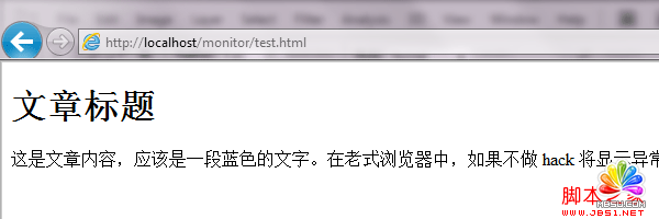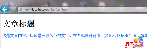 這是文章內(nèi)容,應(yīng)該是一段藍(lán)色的文字。在老式瀏覽器中,如果不做 hack 將顯示異常。