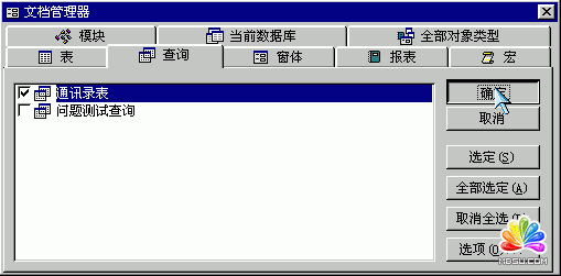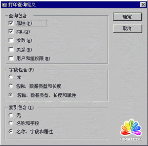 在這個(gè)對(duì)話框中也有選項(xiàng)卡,我們選中“查詢(xún)”選項(xiàng)卡,然后在相應(yīng)的列表框中選擇需要的對(duì)象名,選好以后,單擊“確定”按鈕就可以將這些選項(xiàng)的各種內(nèi)容顯示出來(lái),你如果需要可以將這些內(nèi)容打印出來(lái)。