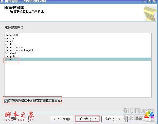 -- 在"腳本向?qū)?的"選擇數(shù)據(jù)庫"中, 確定選擇的是要轉(zhuǎn)到2000的庫
