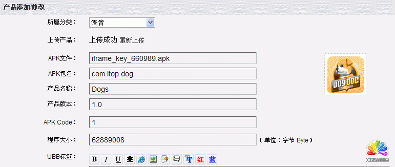 3、檢測,如果是新上傳的APK,則其包名在數(shù)據(jù)庫中是否存在。就是禁止上傳相同包名的APK。修改時不檢測。