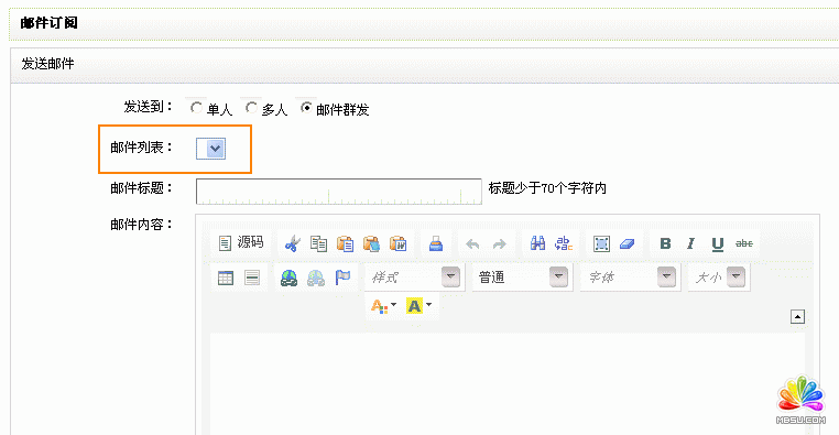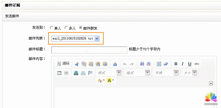 郵件群發(fā),群發(fā)郵件通過群發(fā)列表發(fā)送,如果沒有群發(fā)列表,則郵件列表為空,沒有郵件發(fā)送的對像,不能發(fā)發(fā)送郵件(如圖11)。