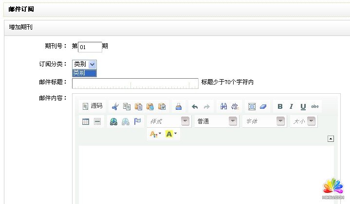 訂閱期刊管理:站長可以通過訂閱期刊管理自定義發(fā)送的郵件內(nèi)容。進入“模塊/訂閱期刊管理”(如圖18),期刊號可以自由更改控制,但是無任何類別的期刊不能增加(如圖19)。