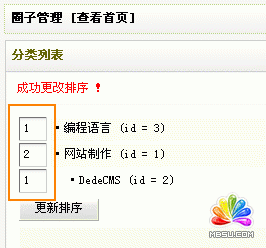 更新排序以降序顯示,數(shù)字越大排序越靠后,排序從1開始,依次遞增(如圖9)。新增分類中的排序級別與此處的排序一樣。