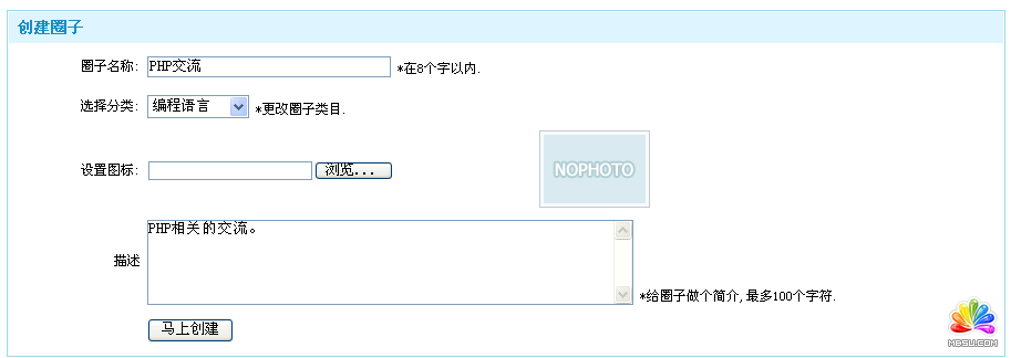 進入圈子的首頁,在導航菜單中選擇“創(chuàng)建圈子”鏈接(如圖13)。