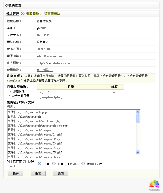 留言薄的安裝過程和其他插件一樣,首先我們進(jìn)入后臺(tái)模塊管理列表,點(diǎn)擊其對(duì)于的“安裝”: