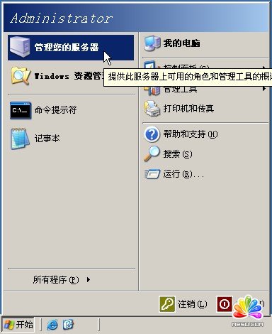 打開(kāi)“開(kāi)始”菜單,點(diǎn)擊“管理您的服務(wù)器”(如圖1所示),點(diǎn)擊“添加或刪除角色”(如圖2所示)。