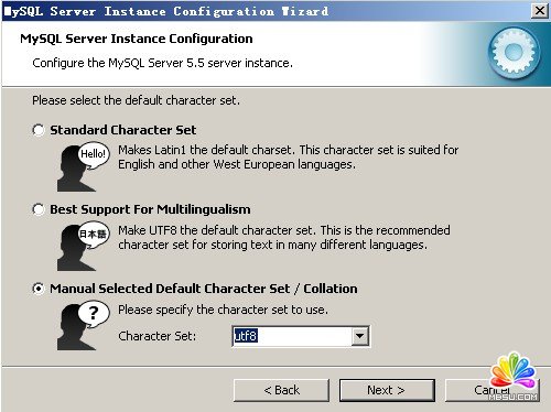 點(diǎn)擊下一步,選擇默認(rèn)字符集,這里選擇自定義的utf8字符集(圖17)