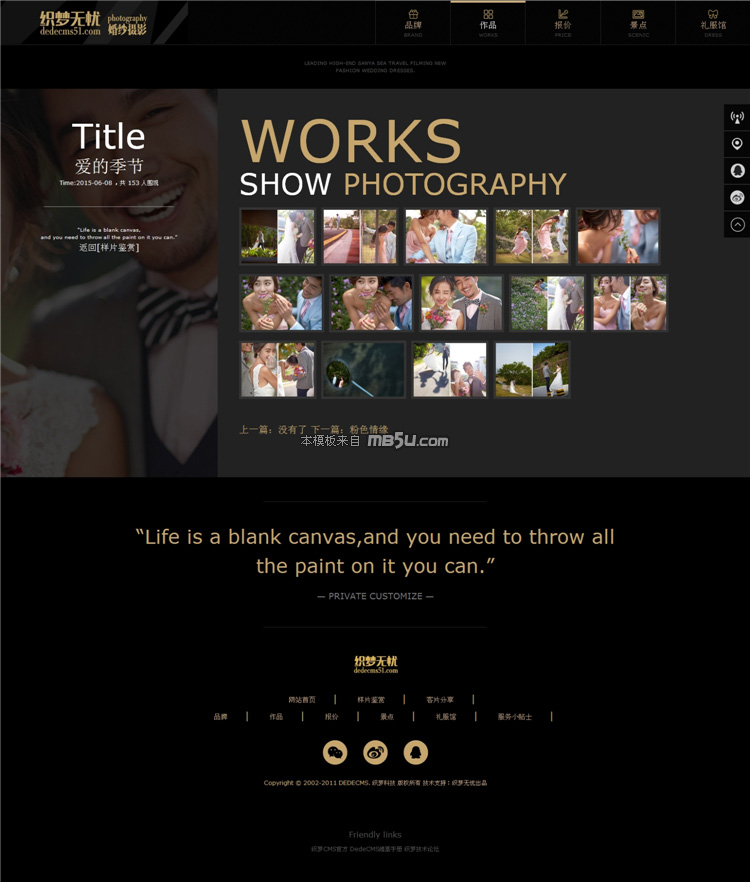 html5響應式婚紗攝影旅游定制自適應手機wap模板源碼
