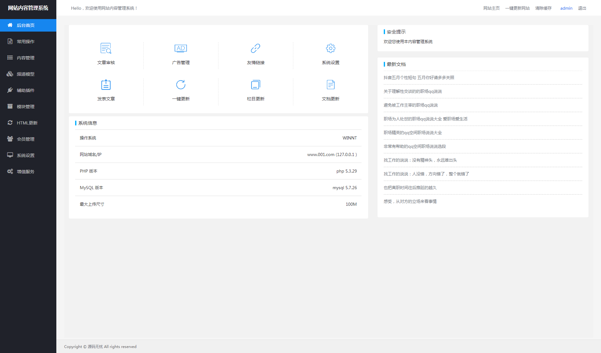 5.后臺(tái),點(diǎn)“生成” - “一鍵更新網(wǎng)站” - “更新所有”,重新生成一次所有頁(yè)面,OK 完成。