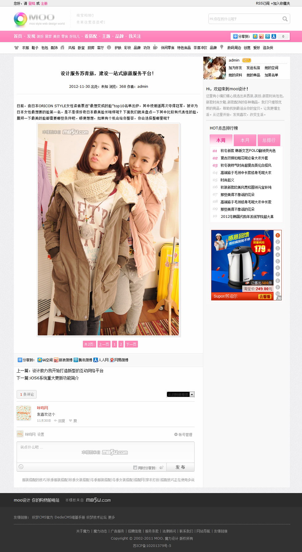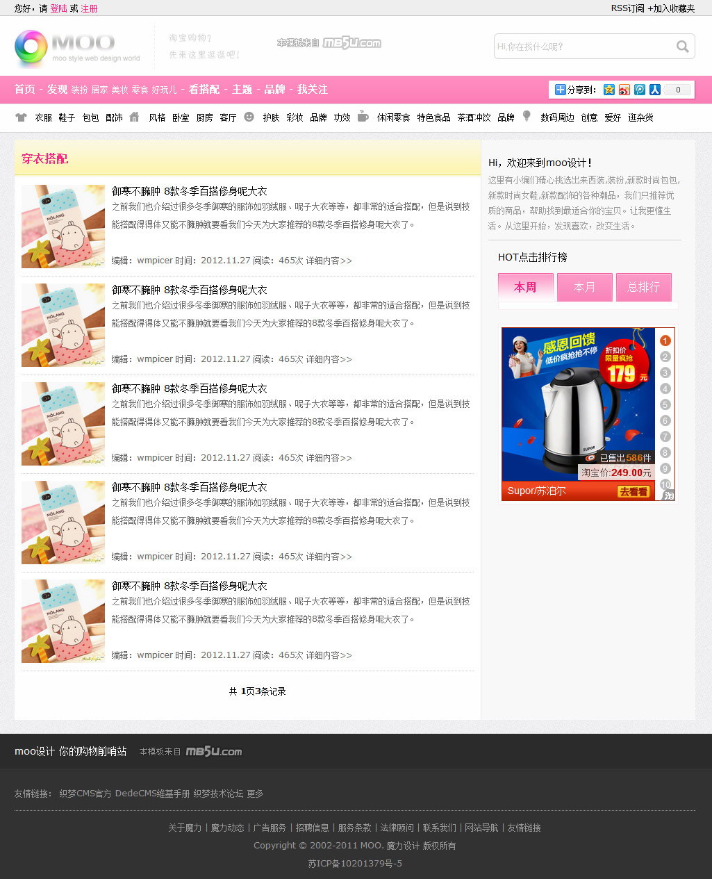 蘑菇街 美麗說瀑布流導購DEDECMS織夢模板