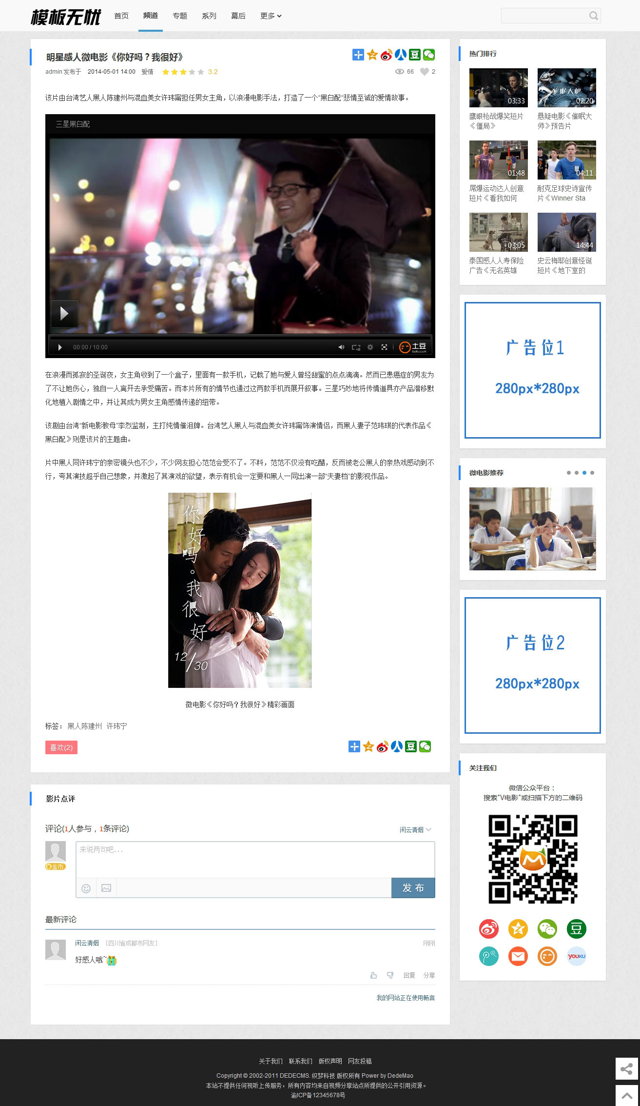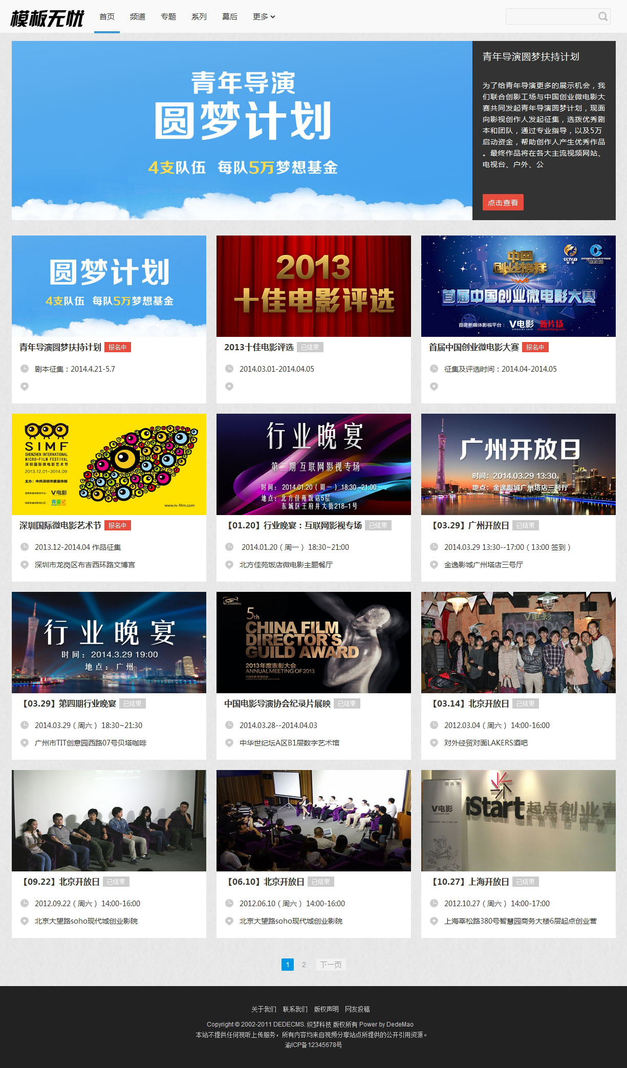 大氣微電影類織夢模板,測試完整無錯,兼容主流瀏覽器。