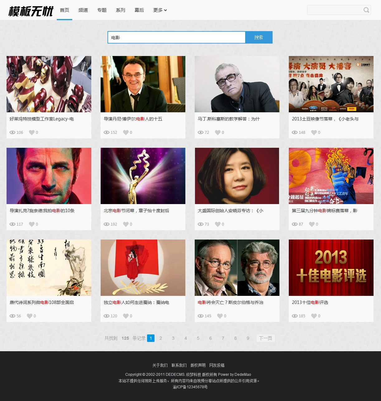 織夢dedecms大氣微電影網站模板