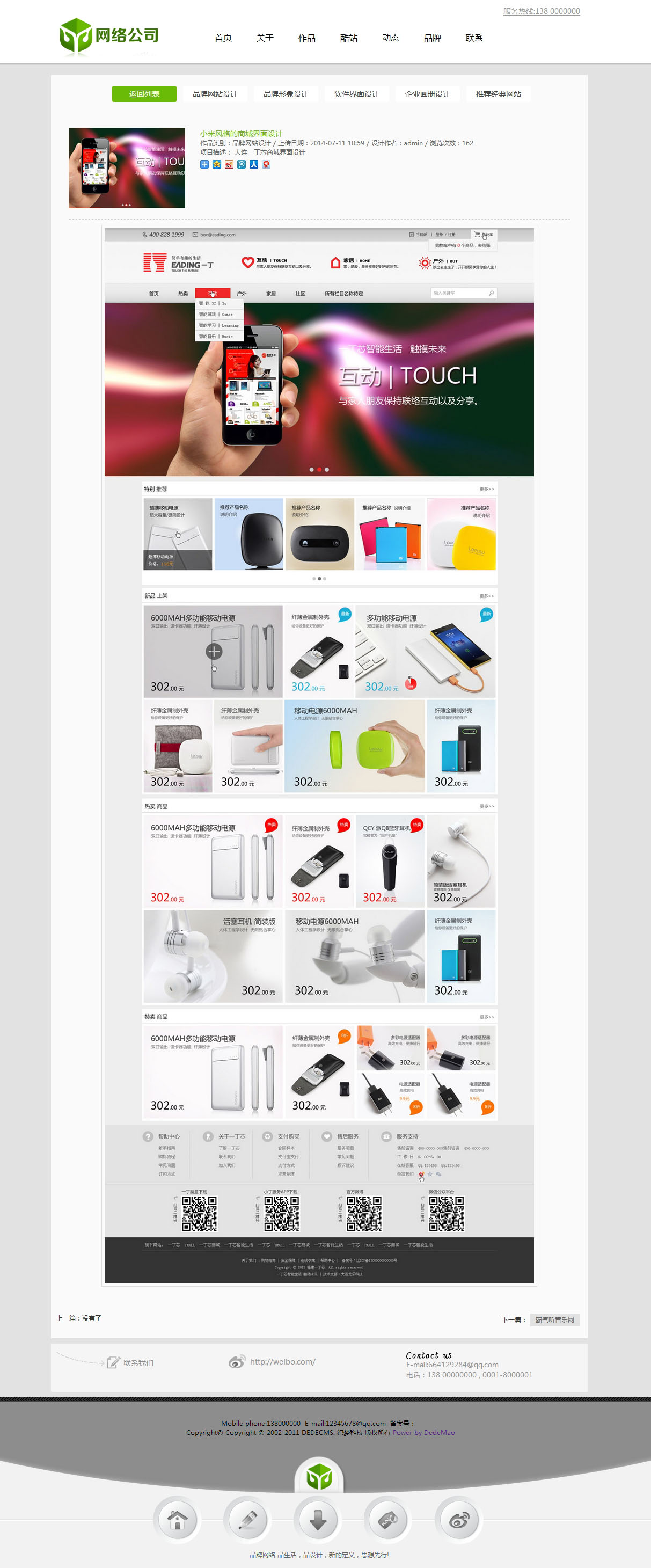 此套模板是一套,高端工程類網(wǎng)站模板帶有手機(jī)版在加上十色的配色,讓模板瞬間高大上有沒(méi)有?價(jià)格:元 點(diǎn)擊:21織夢(mèng)CMS網(wǎng)絡(luò)建站設(shè)計(jì)公司企業(yè)