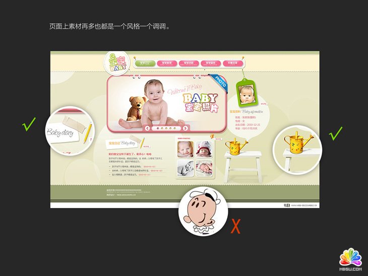 要保證頁面上的素材風(fēng)格一致,都是一個(gè)調(diào)調(diào);