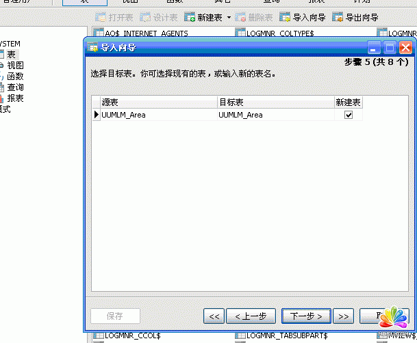 6、選擇相關(guān)表名后點“下一步”,出現(xiàn)下圖�?梢灾付ㄒ獙�(dǎo)入進(jìn)oracle哪個表,也可以輸入新的表名。