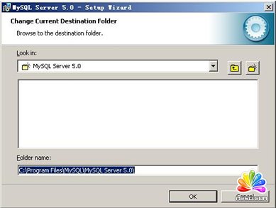 填上安裝目錄,我的是“F:ServerMySQLMySQL Server 5.0”,也建議不要放在與操作系統(tǒng)同一分區(qū),這樣可以防止系統(tǒng)備份還原的時候,數(shù)據(jù)被清空。按“OK”繼續(xù)。