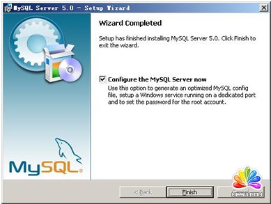 現(xiàn)在軟件安裝完成了,出現(xiàn)上面的界面,這里有一個很好的功能,mysql配置向?qū)В挥孟蛞郧耙粯�,自己手動亂七八糟的配置my.ini了,將 “Configure the Mysql Server now”前面的勾打上,點“Finish”結(jié)束軟件的安裝并啟動mysql配置向?qū)А?