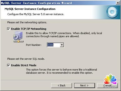 是否啟用TCP/IP連接,設(shè)定端口,如果不啟用,就只能在自己的機(jī)器上訪問mysql數(shù)據(jù)庫了,我這里啟用,把前面的勾打上,Port Number:3306,在這個頁面上,您還可以選擇“啟用標(biāo)準(zhǔn)模式”(Enable Strict Mode),這樣MySQL就不會允許細(xì)小的語法錯誤。如果您還是個新手,我建議您取消標(biāo)準(zhǔn)模式以減少麻煩。但熟悉MySQL以后,盡量使用標(biāo)準(zhǔn)模式,因?yàn)樗梢越档陀泻?shù)據(jù)進(jìn)入數(shù)據(jù)庫的可能性。按“Next”繼續(xù)