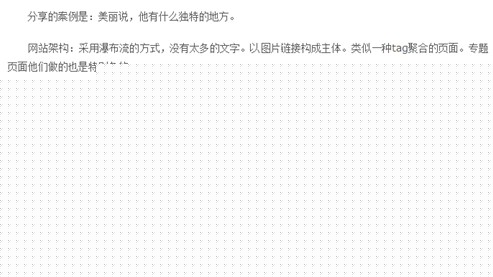 - ZAC關(guān)于美麗說(shuō)的一個(gè)案例分析,案例里面談到了目前SEO行業(yè)的狀況,也是我非常認(rèn)同的一個(gè)觀點(diǎn),目前的SEO遇到三個(gè)難題:怎么樣進(jìn)行網(wǎng)站架構(gòu),如何建設(shè)獨(dú)特的網(wǎng)站內(nèi)容,網(wǎng)站