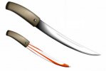 - 其實(shí)方法比較簡單,也沒有把刀做的很花哨,知道金屬可以這樣搞,有時間的話,誰都可以打造一件漂亮的家伙。 先來看下最終效果: 1. 用鋼筆工具畫出形狀,調(diào)整手柄,使比實(shí)際需要的稍微長一些。 2. 填充:漸變-星狀放射。調(diào)節(jié)顏色和手柄,可以試試操作簡單的放射狀漸變
