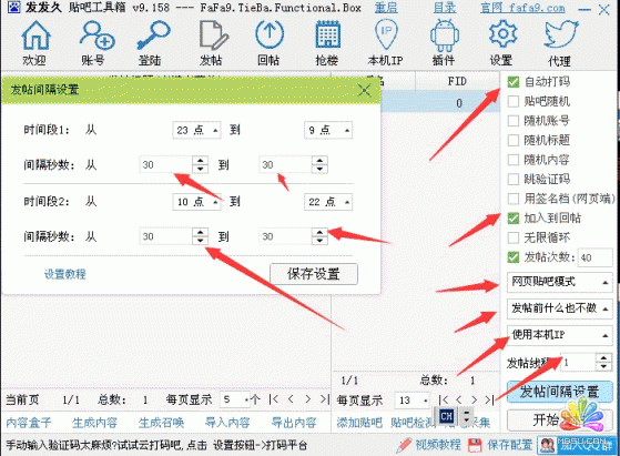 成功發(fā)帖后帖子直接被工具導入回帖菜單中,還是同發(fā)帖一樣把它設(shè)置好。