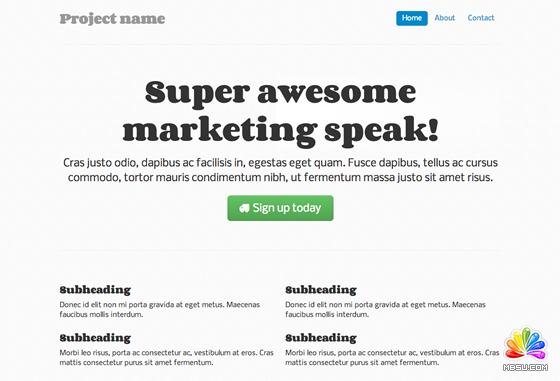 接著將引用寫入網頁頭部中,代碼為 ,這時候我們可以隨時在網站上任意地方自由使用這些圖標字體了,如要想將一個卡車圖標添加到注冊按鈕的話只需聲明一下就可以, Sign up today。同時為了防止加入圖標字體后引起按鈕拉伸變形,還需要一點點額外的工作,將按鈕寬度加大一點(.jumbotron .btn i { margin-right: 8px; })。最后效果如下: