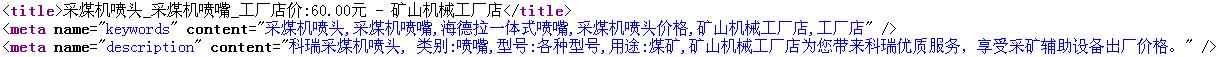 ,這個是怎么出現的呢,我通過查閱后臺發(fā)現,在發(fā)布產品的后臺有一個關鍵詞設置,我填寫了“采煤機噴嘴”,所以才會在網站標題中出現,我自己的一個無心之舉給產品排名帶來了這個大的效果,這是我沒有想到的。