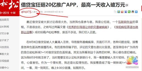 當(dāng)時(shí),我清晰的記得不少公司的推廣員,在百度搜索,“如何推廣借貸寶”,然后發(fā)現(xiàn)了松松博客上的一篇文章,可以查看下“借貸寶狂砸20億推廣APP,最高一天收入破萬(wàn)元”這篇文章的地址。因?yàn)檫@個(gè)文章,讓我算是小賺了一筆,時(shí)間最短,卻實(shí)際上收益最大的,一筆財(cái)富,當(dāng)然肯定比我賺的多的人,大有人在。