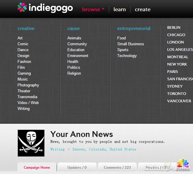 目前這個名為Indiegogo的網(wǎng)站,將被黑客用于報道或是在博客中記錄關(guān)于黑客方面的新聞。
