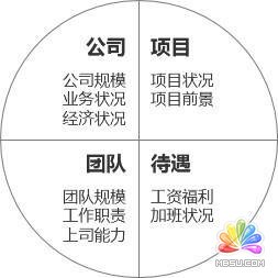 踩了那么多坑,結(jié)合網(wǎng)上看的七七八八的經(jīng)驗(yàn),自己總結(jié)出了一個(gè)簡(jiǎn)單的工作選擇模型,不論選擇offer,還是考慮辭職,都可以考慮以下四個(gè)維度:公司,項(xiàng)目,團(tuán)隊(duì),待遇。