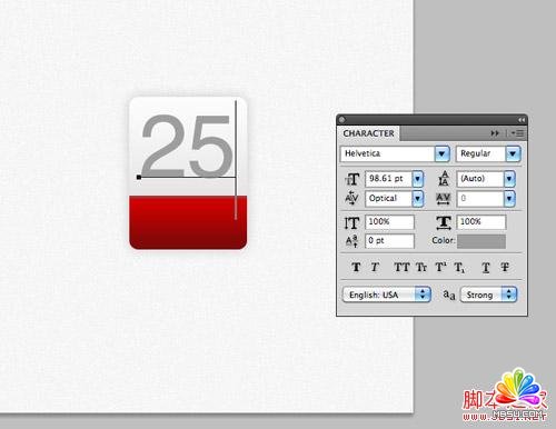 用photoshop的字體工具設(shè)置日歷icon上半部分時(shí)間內(nèi)容的字體效果,字體為Helvetica,顏色為#9e9e9e。