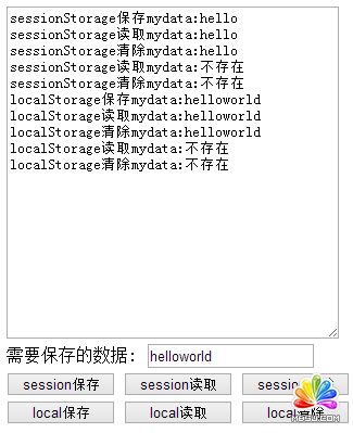 t1.value += "sessionStorage保存mydata:" + mydata + "\n";