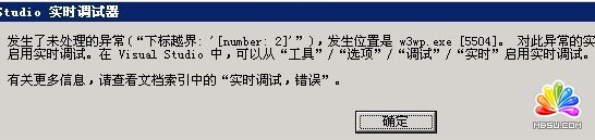 彈出應(yīng)用程序: Visual Studio 實時調(diào)試器: 發(fā)生了未處理的異常(“下標(biāo)越界: '[number: 0]'”),發(fā)生位置是 w3wp.exe [2472]。 對此異常的實時調(diào)試失敗,錯誤為: 安裝的調(diào)試器都沒有啟用實時調(diào)試。在 Visual Studio 中,可以從“工具”/“選項”/“調(diào)試”/“實時”啟用實時調(diào)試。