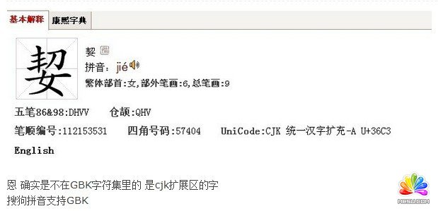 前天同事在幫客戶錄數(shù)據(jù)的時候,發(fā)現(xiàn)有一個人的名字里有個“㛃”(念jie,同“潔”)字,但用搜狗拼音和萬能五筆都打不出來,我百度了一下,找到了一篇搜狗論壇的建議帖,有人建議搜狗拼音里增加“