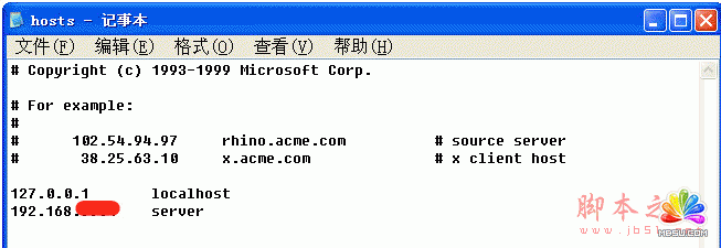 配置方式: 用記事本打開hosts文件,在文件的最下方添加IP地址和主機名的對應關系。如圖: