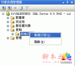 接下來,我們配置訂閱服務器。訂閱服務器是winxp系統(tǒng),SqlServer版本為SqlServer 2005 Manager Studio Express ,只支持訂閱。