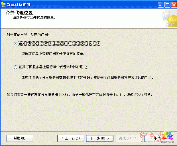 (3)選擇運行代理的位置,根據(jù)需求選擇是“推送”還是“請求”!