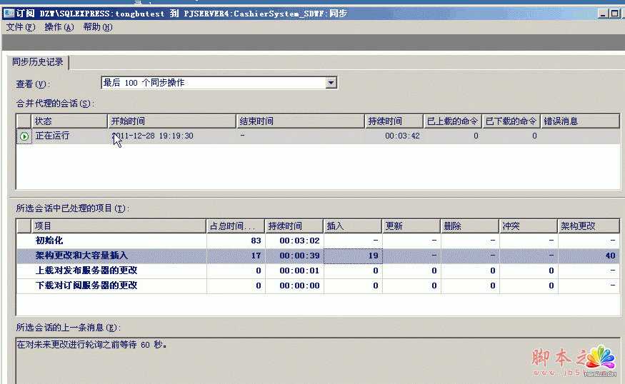(3)打開屬性后,會彈出同步歷史記錄的對話框。這里有插入、更新、刪除等操作的記錄。