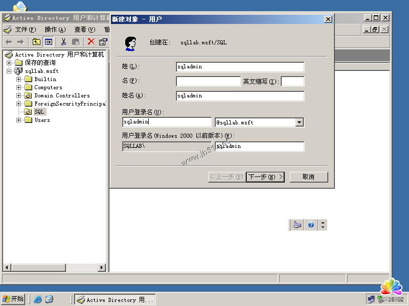 sqladmin 密碼:K3$f0z6 密碼可自行設定,這里為了符合AD域的密碼策略。