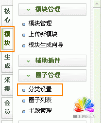 分類設(shè)置:圈子分類選擇“模塊/分類設(shè)置”可對圈子分類(如圖4)。