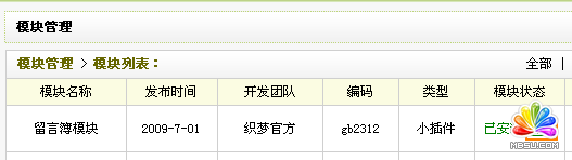 留言薄的卸載,同樣首先我們要進(jìn)入模塊管理列表,點(diǎn)擊其后的“卸載”: