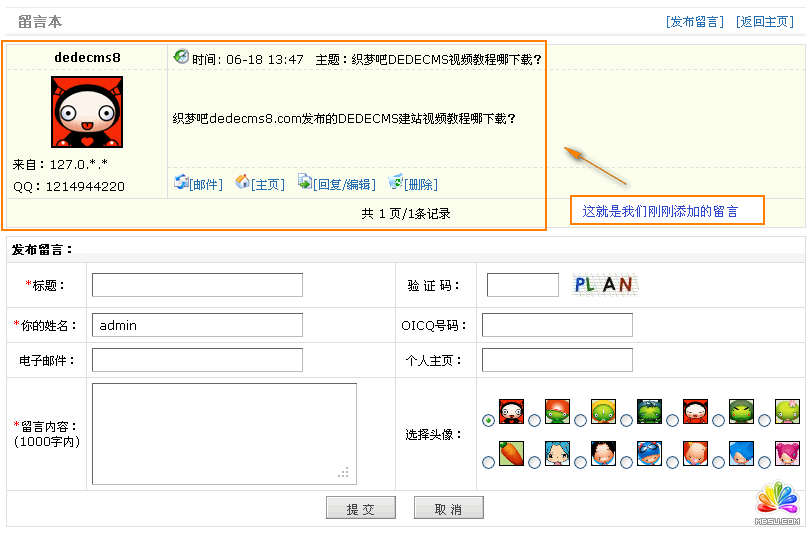 DedeCms教程:留言簿模塊_DedeCms教程
