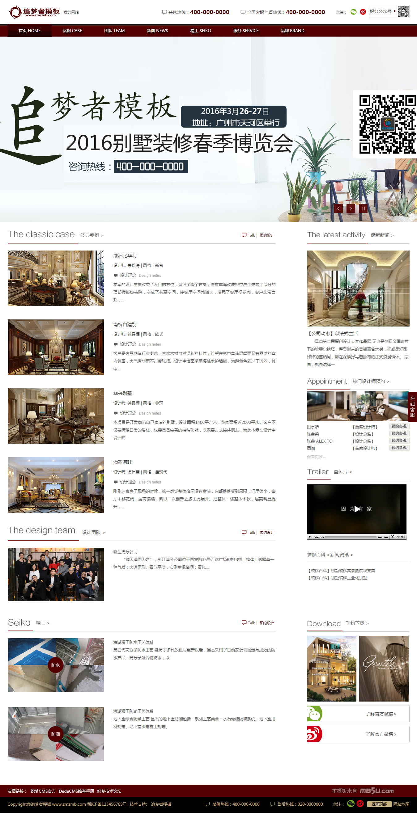 織夢CMS內(nèi)核HTML5自適應(yīng)裝飾裝修公司網(wǎng)站模板(支持移動設(shè)備) ,適合酒店設(shè)計,建筑,室內(nèi)設(shè)計,裝飾等行業(yè)使用,測試完整無錯,兼容所有主流瀏覽器。本模板基于DEDE Cms 5.7 UTF-8設(shè)計,5.5以上的版本應(yīng)該都能使用。如果需要GBK編碼版本請自行轉(zhuǎn)換編碼或聯(lián)系網(wǎng)站客服,如果不會安裝聯(lián)系網(wǎng)站客服協(xié)助。