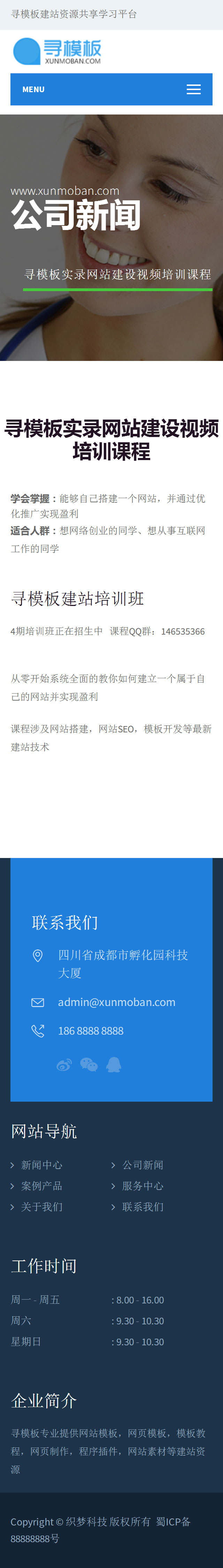 此套模板的配色很正,藍色和深藍色的配色讓此套模板看起來相當(dāng)?shù)氖娣�。底部的配色和設(shè)計都相當(dāng)?shù)那擅罹馈m撁娴木唧w效果大家請參考演示站吧。