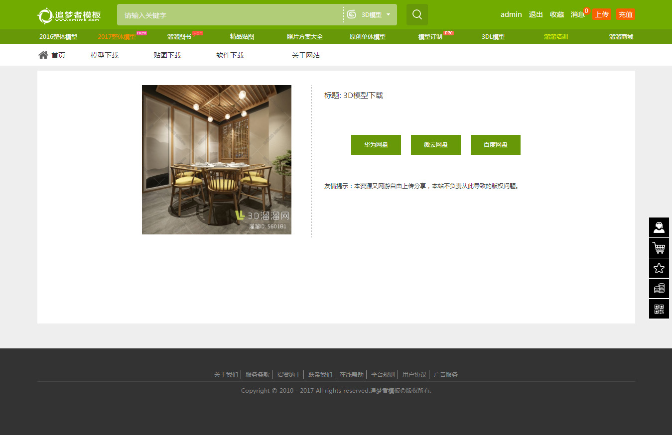 3D模型素材分享素材下載平臺(tái)織夢(mèng)模板(帶會(huì)員中心)