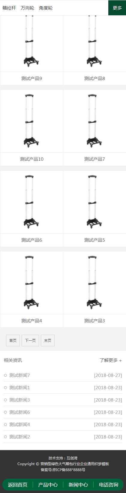 營(yíng)銷(xiāo)型綠色大氣箱包行業(yè)企業(yè)通用織夢(mèng)模板+wap手機(jī)端同步-互創(chuàng)灣出品