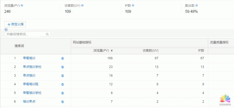 上圖是搜索任意一個(gè)關(guān)鍵詞的首頁(yè)排名展示,如果你要想學(xué)習(xí)做早餐,并且開店,你想點(diǎn)擊哪個(gè)網(wǎng)站?拋開SEO思維,單純從用戶本身出發(fā),我想標(biāo)題和描述越吸引到你,你會(huì)越容易點(diǎn)擊。下圖是投稿截至前華澳站點(diǎn)昨日的流量數(shù)據(jù):
