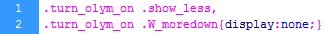 這樣,就只需要js在點(diǎn)擊收起的時(shí)候把turn_olym_on換成turn_olym_off,而點(diǎn)擊展開的時(shí)候把turn_olym_off換成turn_olym_on就可以了,其余的隱藏展示全部有css來搞定。