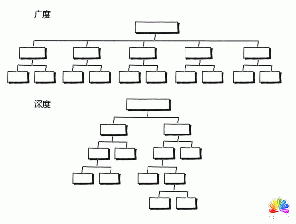 其實(shí)“深廣度”本身并不是一個(gè)單一的概念。在網(wǎng)站的信息架構(gòu)中,有一種組織結(jié)構(gòu)叫做樹(shù)形結(jié)構(gòu):網(wǎng)站首頁(yè)視為鏈接層級(jí)中第一級(jí),與其有從屬關(guān)系的頁(yè)面視為鏈接層級(jí)中的第二級(jí),一般稱(chēng)其為二級(jí)頁(yè)面。通過(guò)二級(jí)頁(yè)面又可以繼續(xù)得到第三級(jí)頁(yè)面,依此類(lèi)推可以得到一個(gè)完整的樹(shù)形鏈接結(jié)構(gòu)。這樣一個(gè)完整的鏈接結(jié)構(gòu),我們稱(chēng)它為樹(shù)形結(jié)構(gòu)。